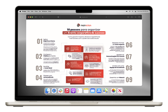 Um guia prático que apresenta 10 passos essenciais para garantir que o seu evento decorre sem falhas, com impacto e com a envolvência certa, considerando todas as etapas, desde os primeiros objetivos até à avaliação pós-evento.